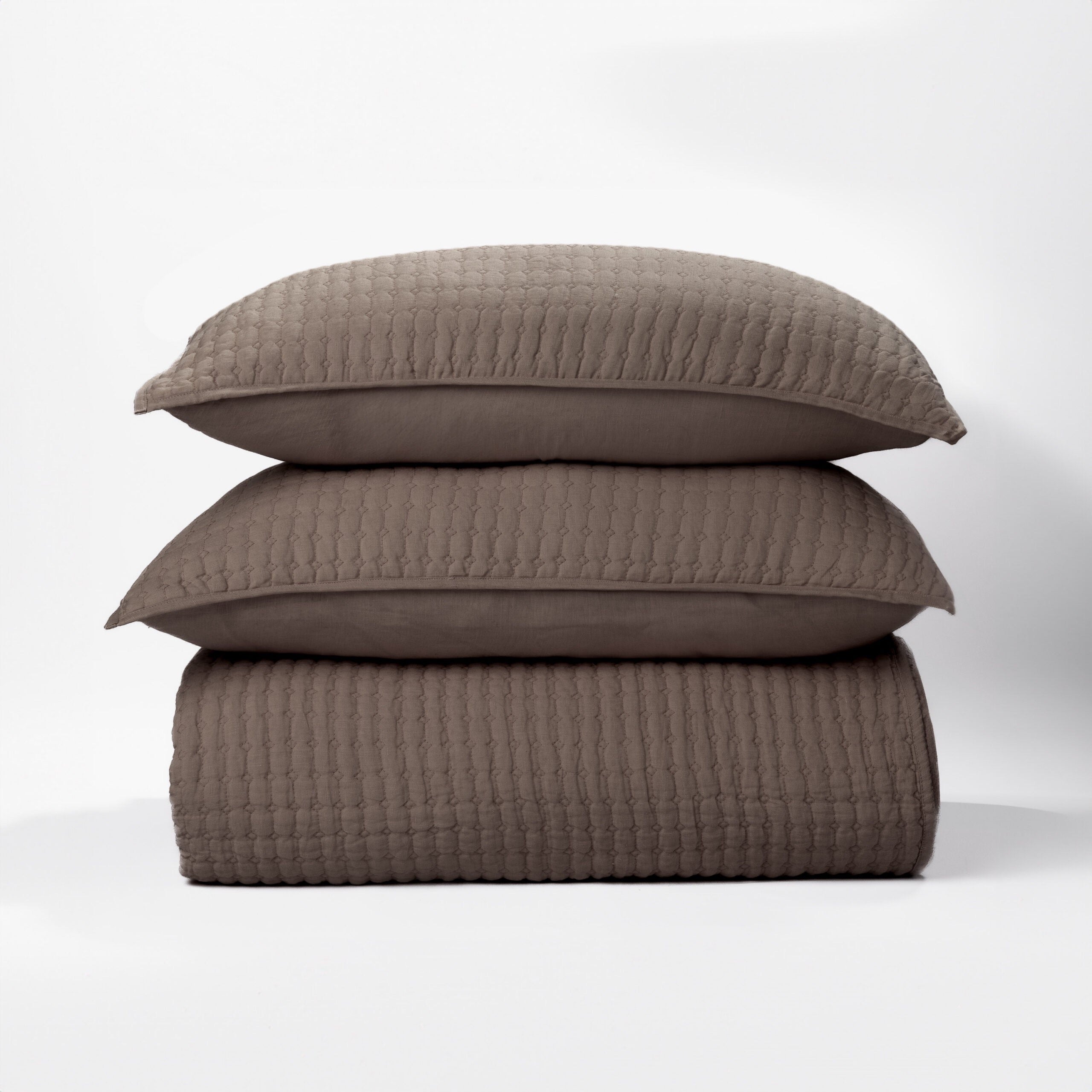 Catalina is constructed of 100% fine linen front and back, and machine quilted in a tight block pattern. The scale of the pattern provides for a structured finish that takes on a modern edge. Available in 10 colors, this collection has infinite style possibilities.