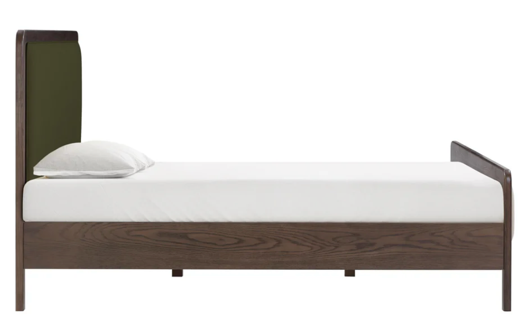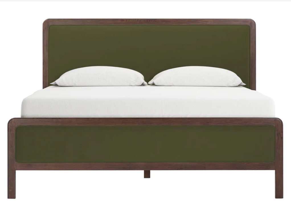 Description: The Hella Velvet Bed strikes a refined balance between mid-century and modern, wrapped in soft matte velvet with a solid wood frame. Available in forest green or taupe, it’s a grounded, design-conscious piece made to suit any space.