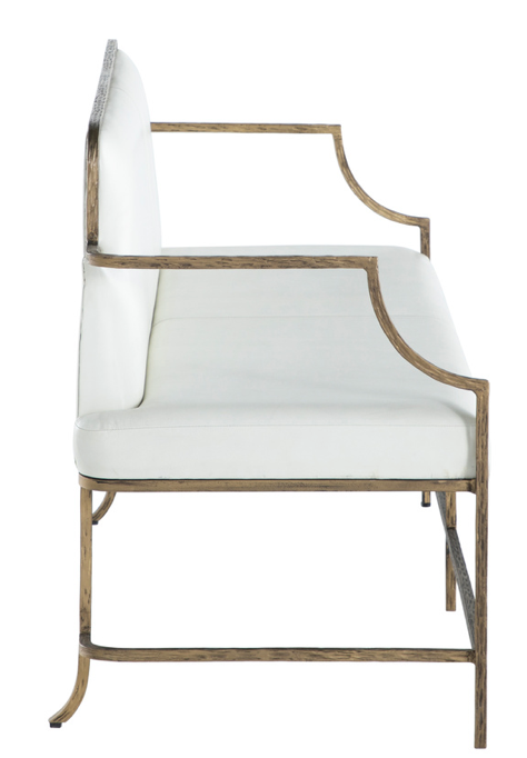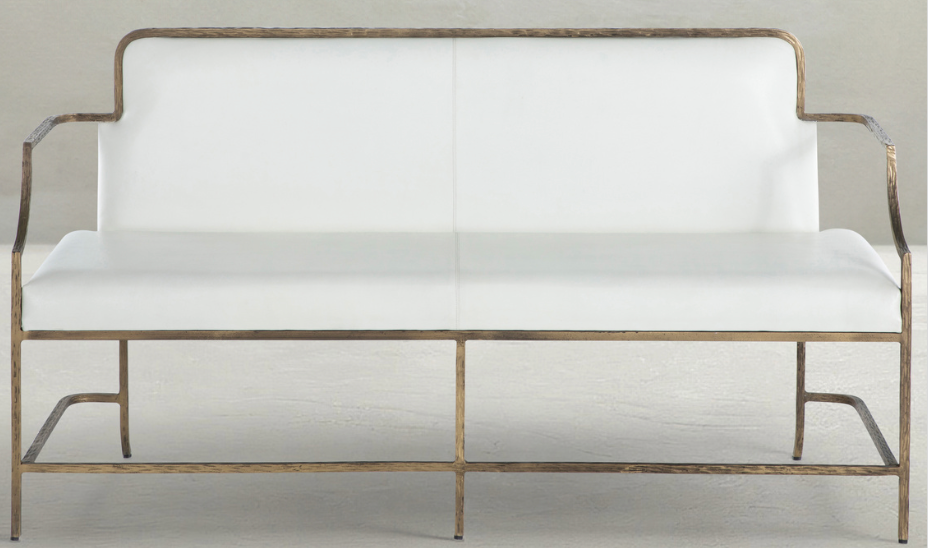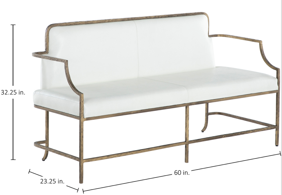 Description: he Vanderbilt Bench is not just a piece of furniture it's an expression of style and quality The luxurious cloud white leather offers an inviting softness while the hammered iron frame provides durability and a unique visual appeal.