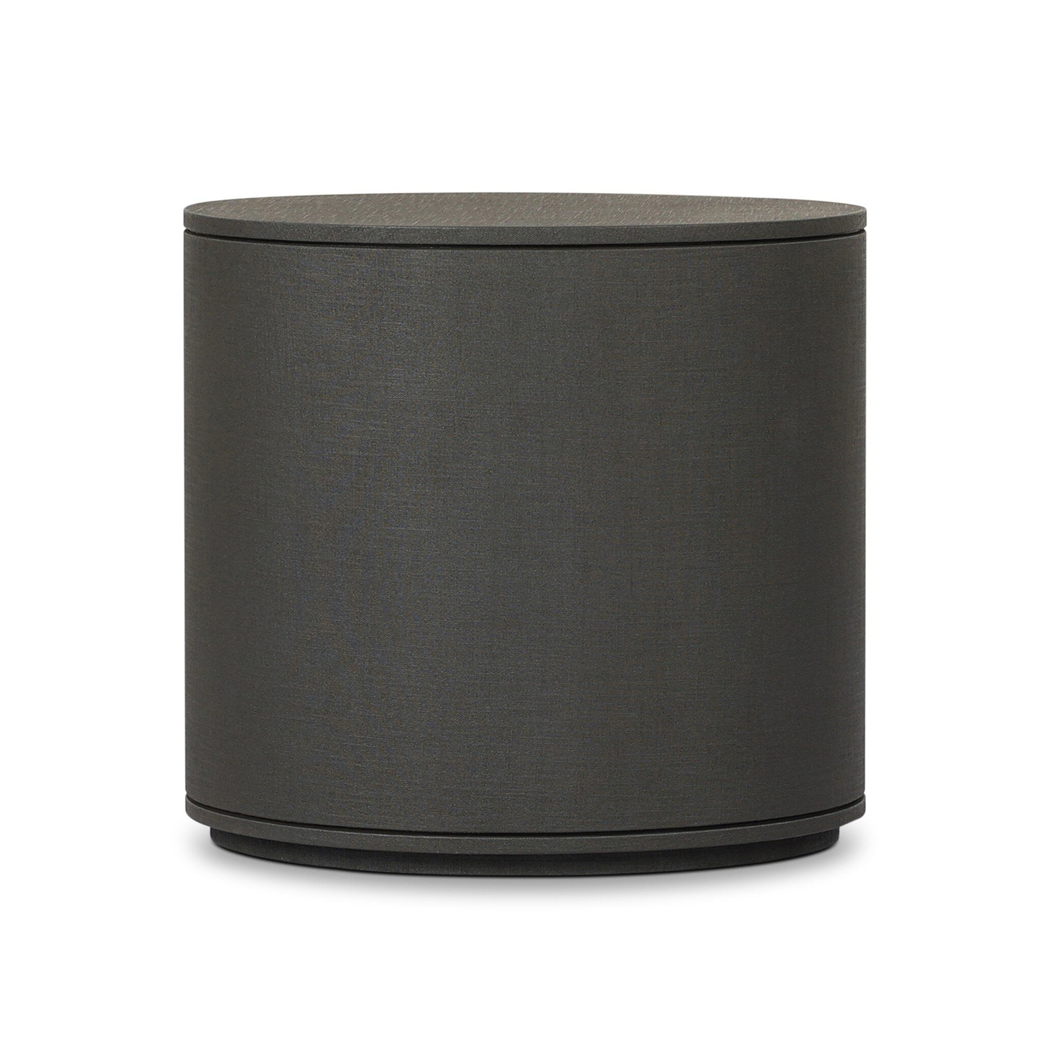Description: Uniquely made from dark green-painted linen, a beautifully curved nightstand shapes four drawers for generous bedside storage.