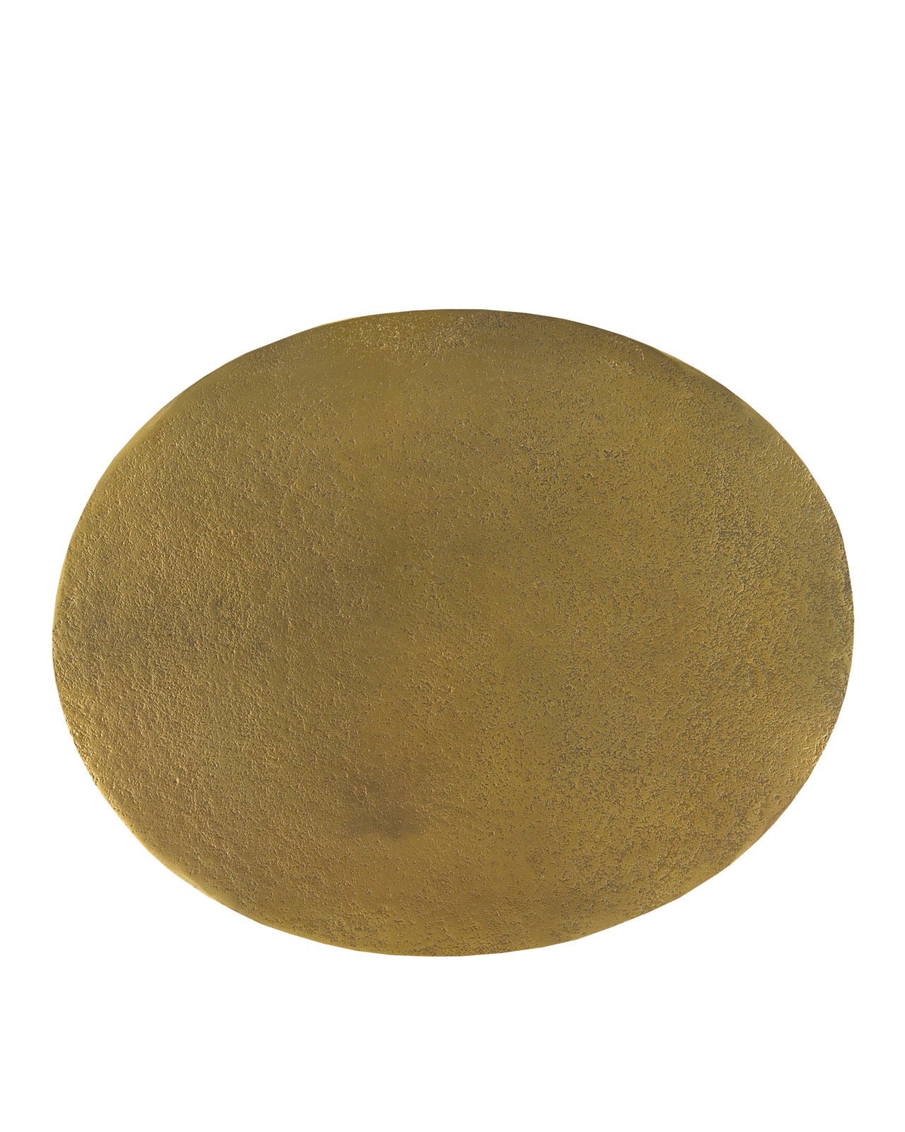Description: The Ishaan Brass Accent Table lifts an oblong tray top on its organically shaped pedestal. The gold accent table is made of cast aluminum in an antique brass finish. It has a time-worn hint of patina thanks to our talented finish artisans.