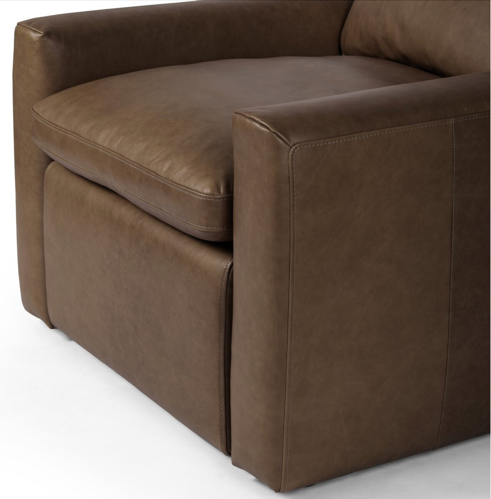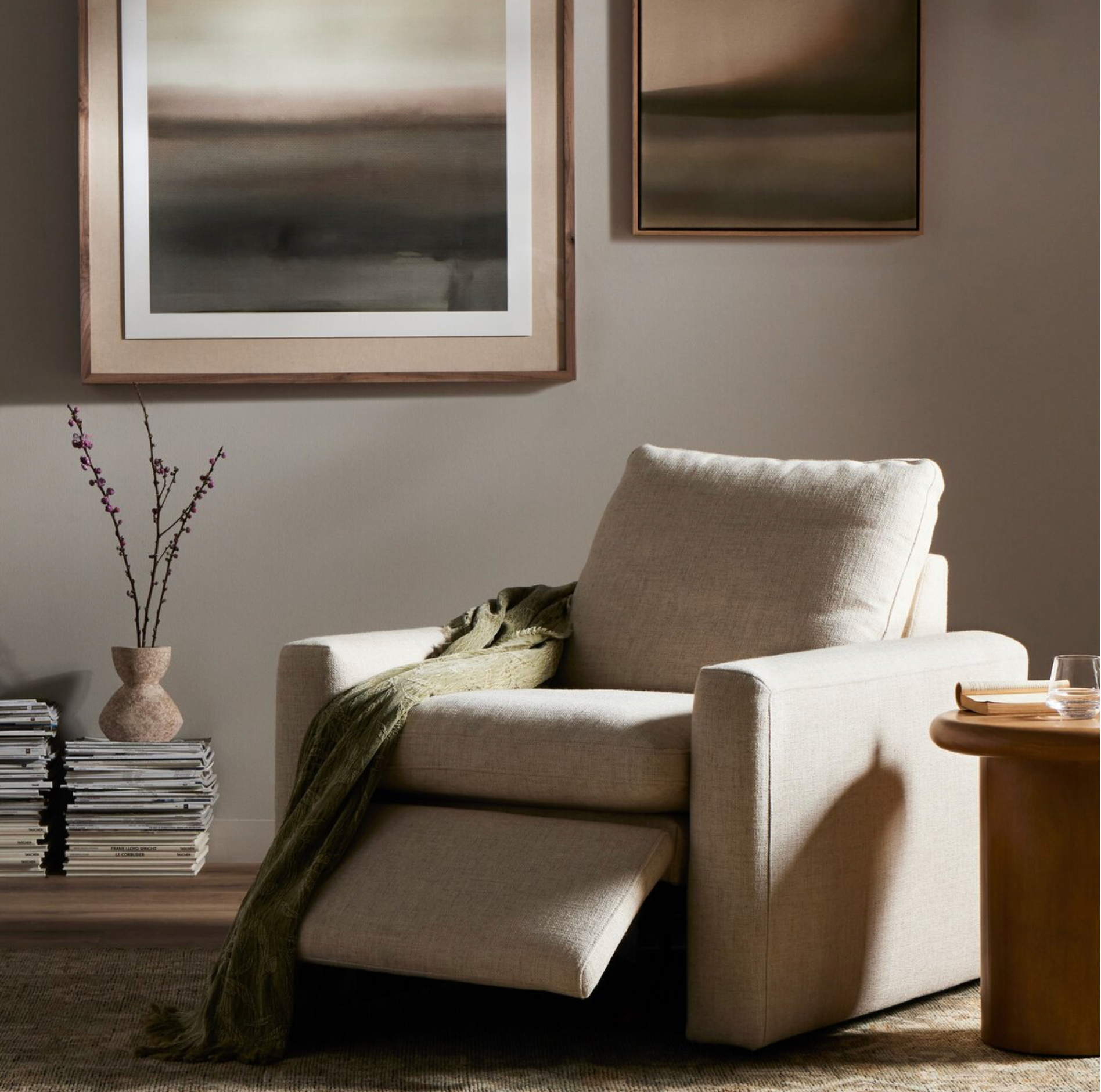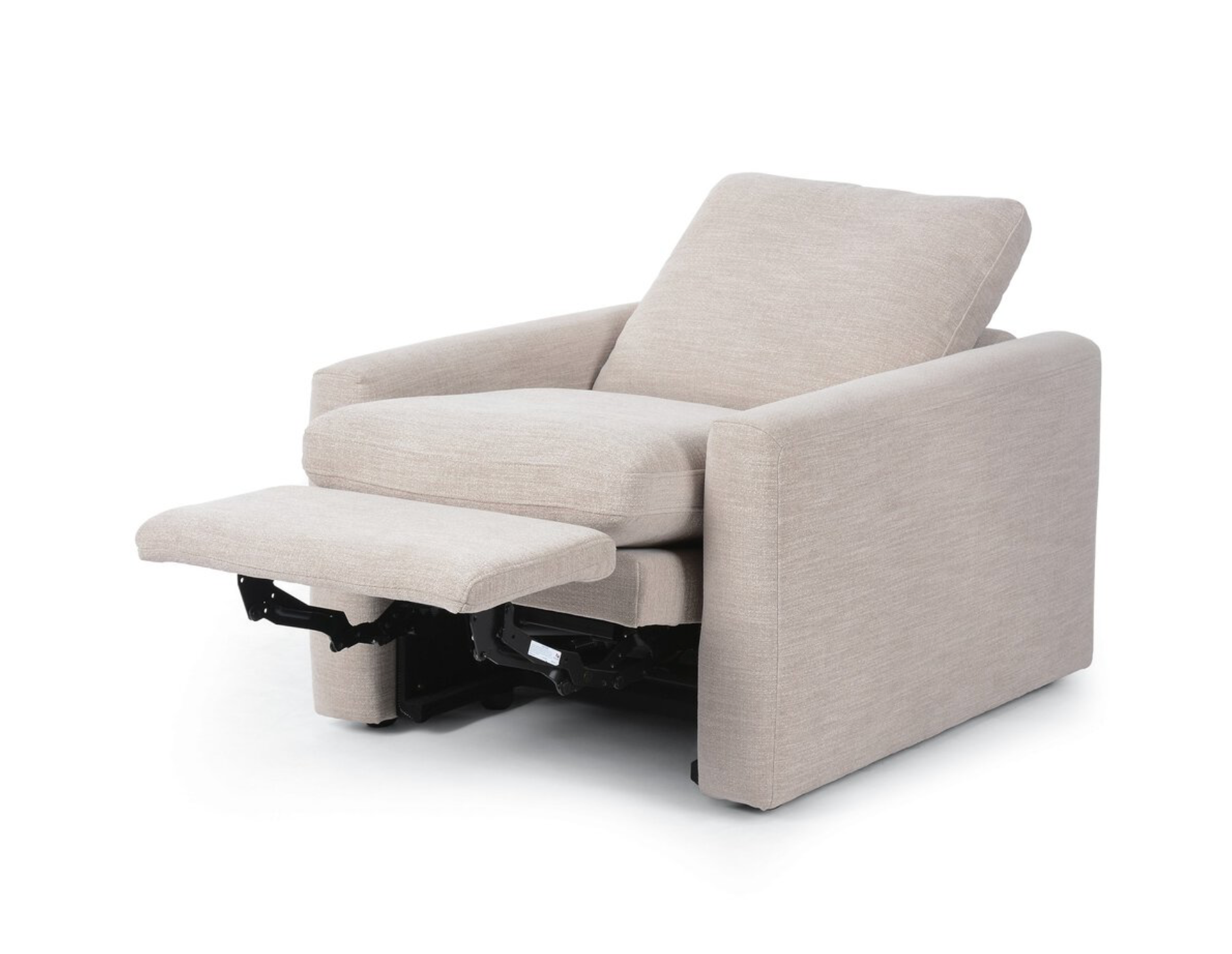 Description: A modern, elevated take on the traditional recliner sectional. Customize your comfort level with the push of hidden buttons with pieces in our Power Motion collection. Recliner features a slightly higher seat and backrest, low, sleek arms, and a motion footrest. Plush feather-blend cushions create a relaxed look and feel. Fluff cushions regularly to maintain appearance. Zero-clearance design means the chair can be placed up against a wall. Performance fabrics are specially created to withstand spills, stains, high traffic and wear, ensuring long-term comfort and unmatched durability. Includes 9'5" power cord. There is a six-motor maximum per power outlet. Each motor comes with a two-year warranty.